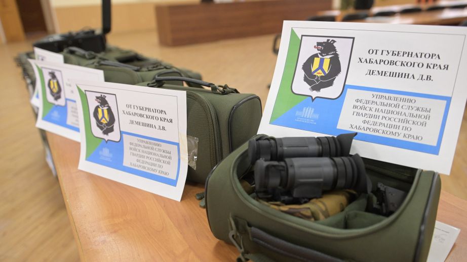 По поручению губернатора Хабаровского края Дмитрия Демешина вице-губернатор Артём Мельников передал управлению Росгвардии региона высокотехнологичное оборудование, которое отправят бойцам в зоне СВО. Среди переданных средств — бинокулярные очки ночного видения и комплексы спутниковой связи.