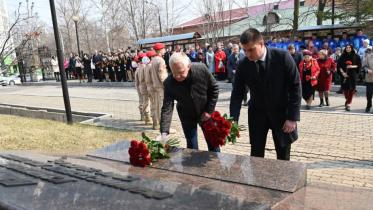 В возложении цветов приняли участие представители правительства края, Закдумы региона, Хабаровского краевого отделения Российского союза бывших несовершеннолетних узников фашистских концлагерей, Хабаровского краевого совета ветеранов (пенсионеров) войны, труда, ВС и правоохранительных органов, представители молодёжных организаций края, школьники.